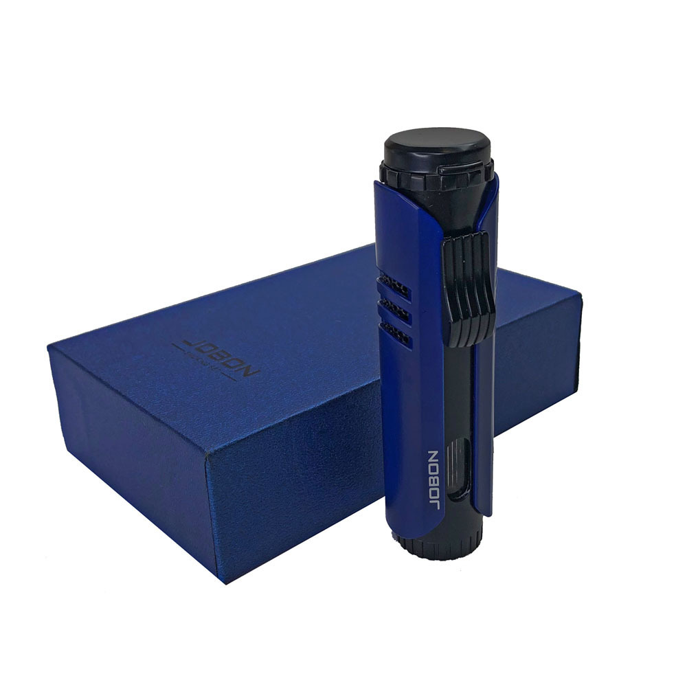 Пьезовая турбо-зажигалка JOBON стальная, увеличенный объем топливника (синяя)