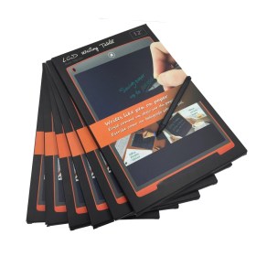 Пластиковый планшет оснащен чувствительным магнитным полем для рисования стилусом. Такой планшет позволяет экономить бумагу и не наносить вреда природе. Работает от 1-ой батарейки-таблетки CR2025, которой хватает, чтобы удалить более 10000 записок. Для стирания надписи или рисунка нужно всего один раз нажать на клавишу.