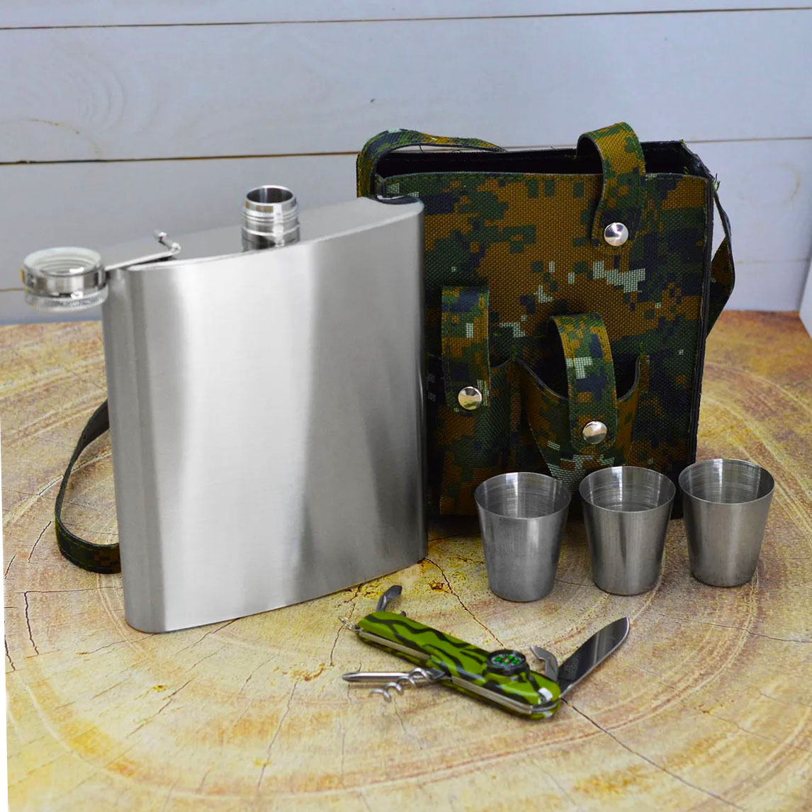 Подарочный набор фляжка 530 мл, 3 стаканчика и мультитул