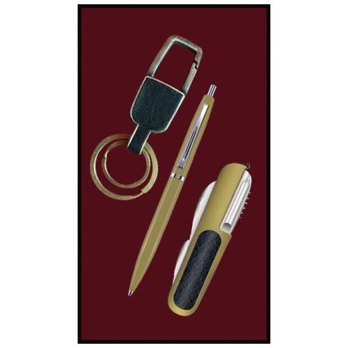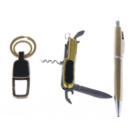 Подарочный набор "Moongrass" №1 с брелоком с вставкой из кожи,авторучкой и перочинным ножом