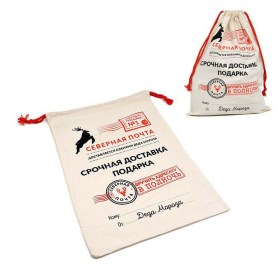 Оригинальный подарочный мешок, стилизованный под посылку от Деда Мороза. Прочный, имеет шнурок для завязывания. Прекрасно подходит для упаковки детских новогодних подарков: конфет, игрушек, сувениров.