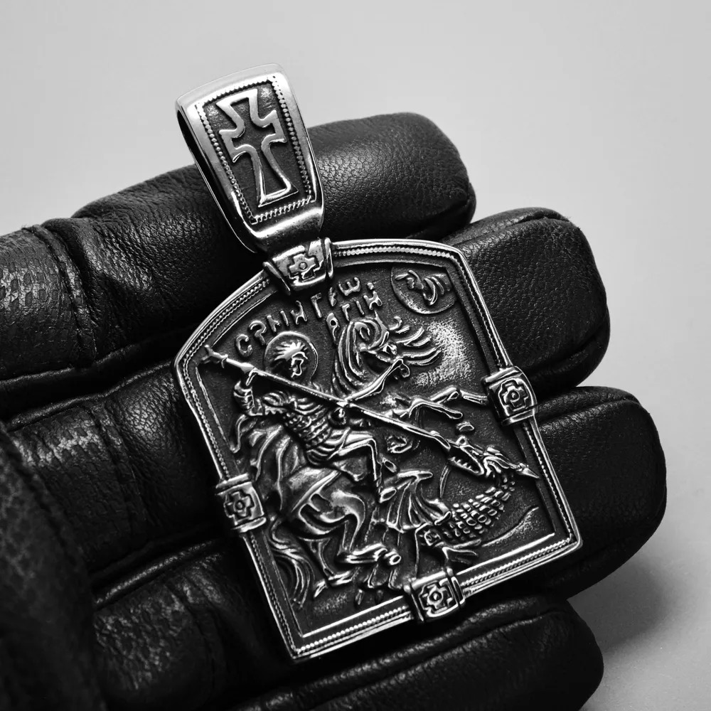 - Вид кулона: икона с Георгием Победоносцем. С обратной стороны - молитва;