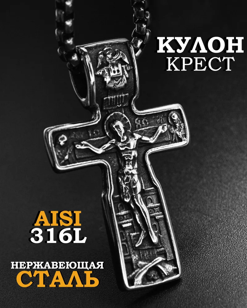 - Форма кулона: крест с изображением Иисуса и Святых на обратной стороне креста;