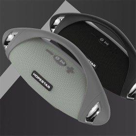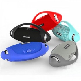 Hopestar H37 имеет вытянуто овальную форму, сверху расположена ручка для переноски, под ней расположены кнопки управления акустикой, разъемы расположены на боковой стороне колонки и надежно закрыты резиновой заглушкой. В Hopestar H37 USB разъём используется для воспроизведения с флешек, microUSB – для зарядки колонки и как вход для FM антенны, антенной служит комплектный кабель USB-microUSB. Колонка имеет отличную защиту от влаги, не боится дождя, поэтому отлично подходит для использования под открытым небом. Прекрасный вариант для подарка!