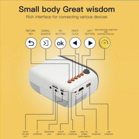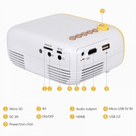 Наслаждайтесь фильмами на большом экране, как в кинотеатре, но не выходя из дома! Любители компьютерных игр также оценят этот мультимедийный проектор, при использовании которого, любимые игры станут ещё более увлекательными! Проектор мультимедийный Led Projector предназначен для обеспечения качественной проецируемой картинки. Использование матрицы и короткофокусного объектива обеспечивает насыщенное изображение со значением контрастности 800:1. В качестве источника света выступает LED-лампа с рабочим ресурсом 30000 часов. Обеспечивая равномерное распределение света с показателями яркости 400-600 люмен, проектор подходит для эксплуатации даже в хорошо освещаемых помещениях. Малые габариты корпуса и вес 250 г делают портативный проектор Led Projector очень практичным в использовании. Устройство имеет удобную панель управления и пульт дистанционного управления. Предназначенный для проецирования видеоконтента на расстоянии 0,8-2 м, аппарат может стать оптимальным вариантом для дома или офиса. Среди разъемов модель Led Projector имеет AV, USB, интерфейс HDMI, слот под карту памяти microSD и выход под наушники. Благодаря наличию динамика обладатель Led Projector может обойтись без внешних колонок. Имеет крепление для штатива.