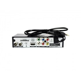 Внешний вид приставки довольно лаконичен: пластиковый корпус, необходимые функциональные разъёмы и кнопки переключения. Для удобства эксплуатации производитель вмонтировал LED-дисплей, предназначенный для отображения текущих состояний. На передней панели, около дисплея, расположен стандартный USB 2.0 выход, позволяющий подключить USB-флешку.