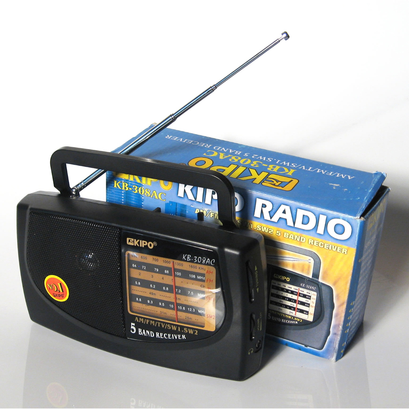 Радиоприёмник KIPO KB-308AC - удобный и компактный переносной радиоприемник с одним динамиком и разъемом для наушников, есть питание от сети.