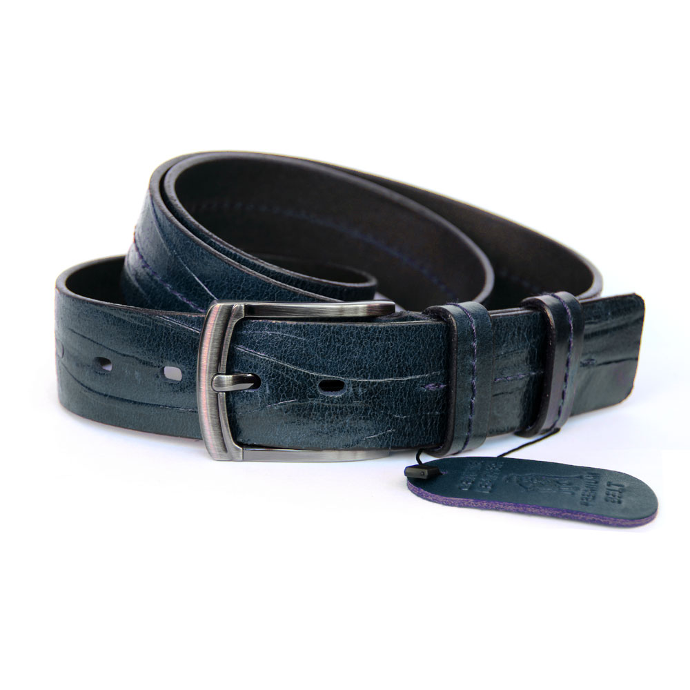 Ремень кожаный Belt-Буйвол 37мм тёмно-синий