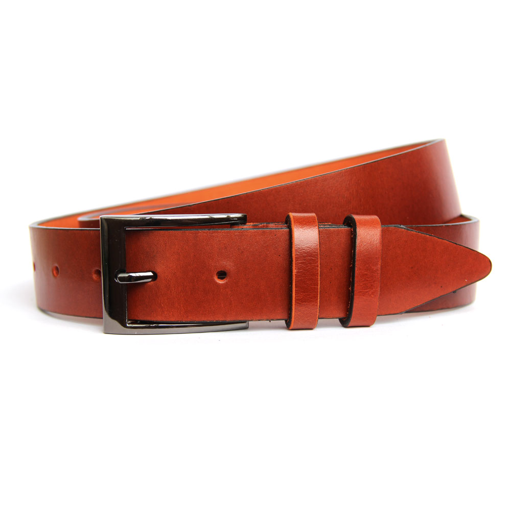 Ремень кожаный мужской Belt-Premium (без швов) 3,3см. оранжевый