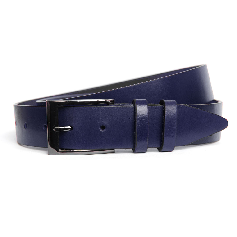 Ремень кожаный мужской Belt-Premium (без швов) 3,3см. синий