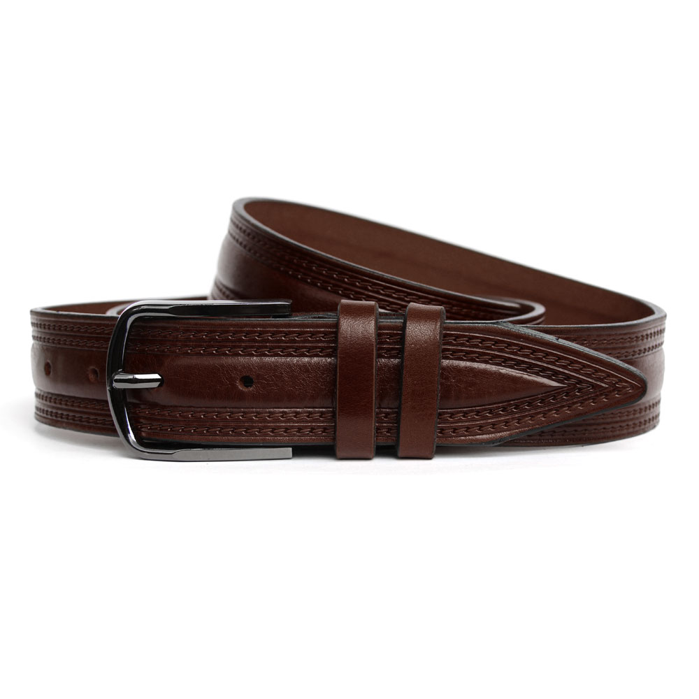 Ремень кожаный однослойный. Прекрасно держит форму и не теряет внешний вид. Сделан из плотной кожи аргентинского буйвола. Частично прошит вощеной нитью. Пряжка никелевая глянцевая.