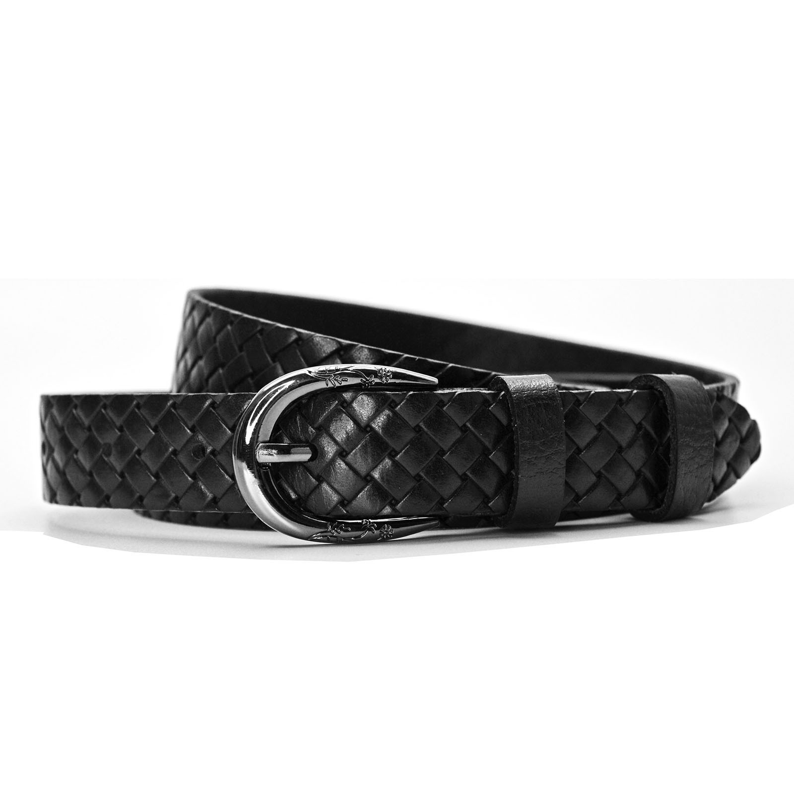 Ремень плетеный кожаный мужской Штучникъ 2,5 см (черный)