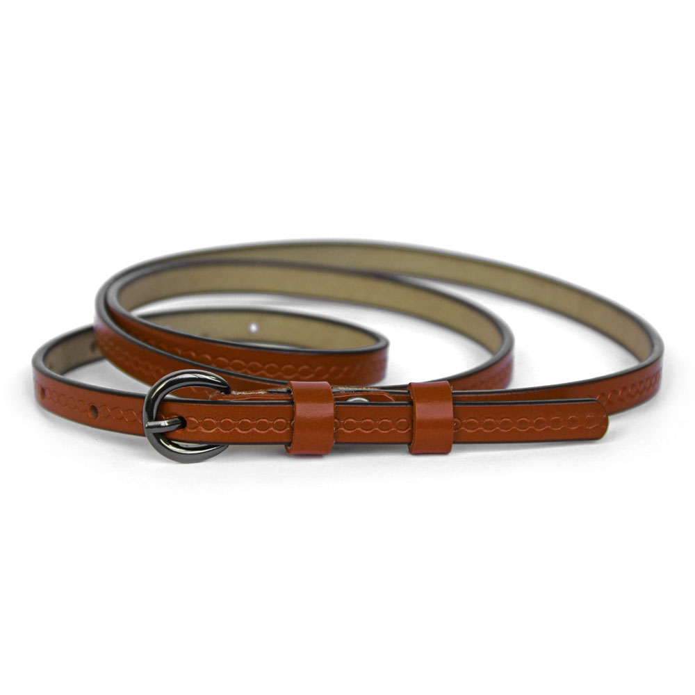 Ремень женский натуральная кожа Belt 1см, коричневый