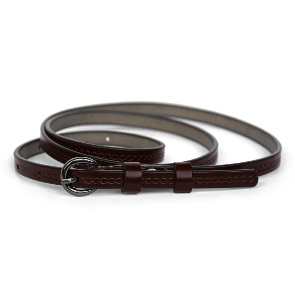 Ремень женский натуральная кожа Belt 1см, тёмно-коричневый