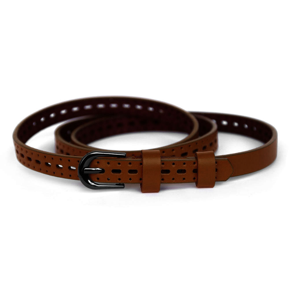 Ремень женский с перфорацией кожа Premium Belt 1.4cм коричневый
