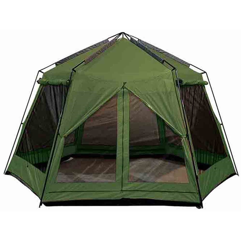 Все швы проклеены Тент обладает высокой водонепроницаемостью 3000 мм водяного столба Ветрозащитная юбка Материал тента: Poly Taffeta 210T PU, Оxford 150D Размеры шатра (ДхШхВ): 420*385*236
