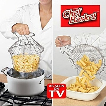 Складная решетка для приготовления пищи Chef Basket заменяет дуршлаг, пароварку, сковородку, гриль, жаровню и даже сумку! Как это возможно? Читайте детальное описание чудо-корзины для повара…