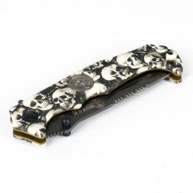 Изготовлен из качественной фабричной 420-ой стали. На клинке есть два шпенька, один под правую руку и второй под левую, для открытия ножа одной рукой. На обухе имеются насечки под большой палец, которые служат удобным упором при мелких работах ножом.