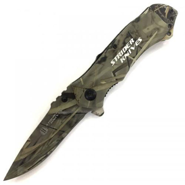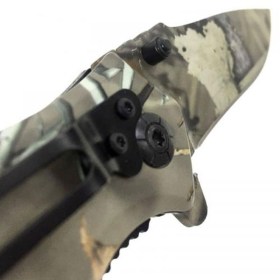 Открывается нож одним из двух вариантов: либо шпеньками на клинке или так называемым ласточкиным крылом. Замок-фиксатор в этой модели ножа идет системы Liner-Lock. На обухе возле рукоятки есть насечки под большой палец руки для тонких работ с ножом, например подстрогать что-то.