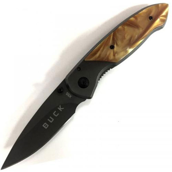 Открывается при помощи шпеньков или можно воспользоваться ласточкиным крылом. Фиксацию самого клинка обеспечивает замок Frame-Lock. На клинке есть небольшая выемка под палец руки, она поможет при мелких работах с ножом, например заточить карандаш.