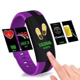 QS01 защищен от влаги по стандарту IP67 (Таблица защиты IP и АТМ для часов и фитнес-браслетов), то есть он не боится воздействия воды и пыли. Выпускается гаджет в пяти цветовых вариантах: черный, коричневый, синий, сиреневый и красный. Экран и характеристики QS01 Sports Smart Bracelet Одно из достоинств этого гаджета – цветной TFT экран, размером 0,96 дюйма с разрешением 160*80 пикселей. Таким же дисплеем оборудован фитнес-браслет Elephone Band W7 и Elephone Band 5, например. В нижней части экрана имеется сенсорная кнопка, с помощью которой происходит переключение между функциями и показателями.