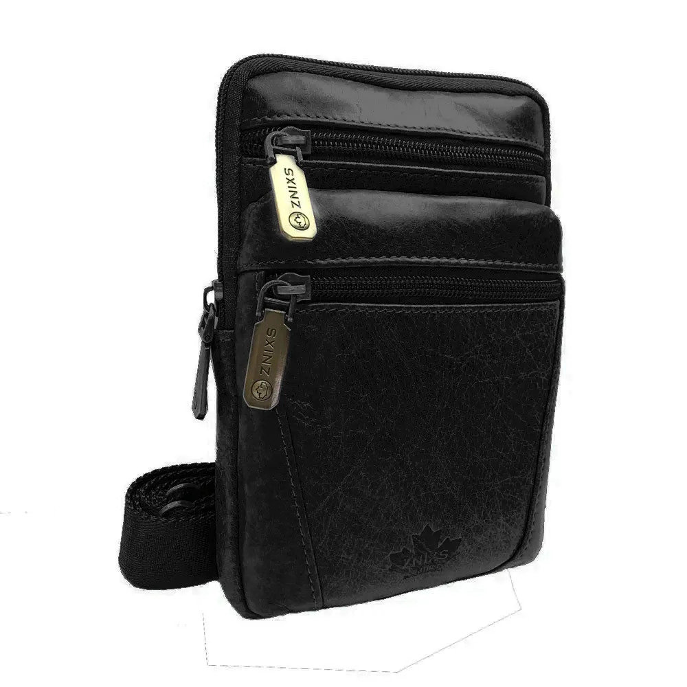 Сумка органайзер на пояс и через плечо, для кошелька, документов и телефона. Натуральная кожа, карабин, ремень Znixs 25013 черный