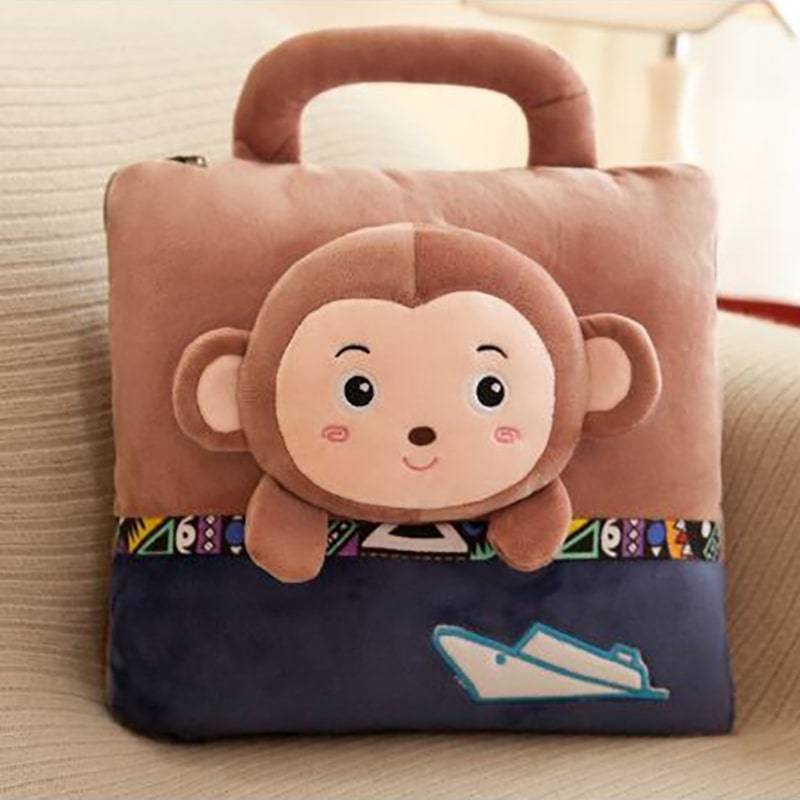 Уютное одеяло, которое раскладывается из сумки с изображением забавных зверюшек. Подобное трансформирование будет очень удобно в путешествии или прогулке. Материал мягкий на ощупь и поможет сохранить тепло и уют.