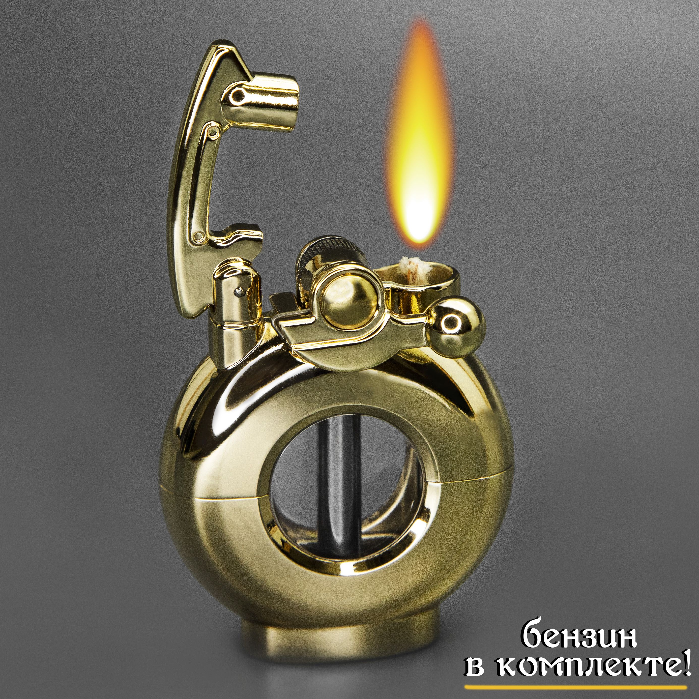- Перед использованием зажигалку необходимо заправить - бензин есть в комплекте;