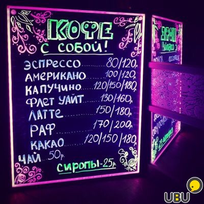 Эффективное средство рекламы и продвижения своих услуг – красочная светодиодная доска способна обращать на себя внимание широкой аудитории. Открывает широкие возможности для проведения рекламных кампаний – с указанием информации о действующих акциях, скидках, мероприятиях и других сведений для своей целевой аудитории. На ней легко указывать надписи или выводить другие сведения с помощью специальных цветных маркеров. При этом создается эффект действительно эксклюзивной рекламы, не остающейся без внимания.