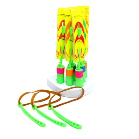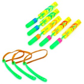 · Держа за хвостик вертолета, оттяните вертолет на резинке и оптустите (не направлять на людей)