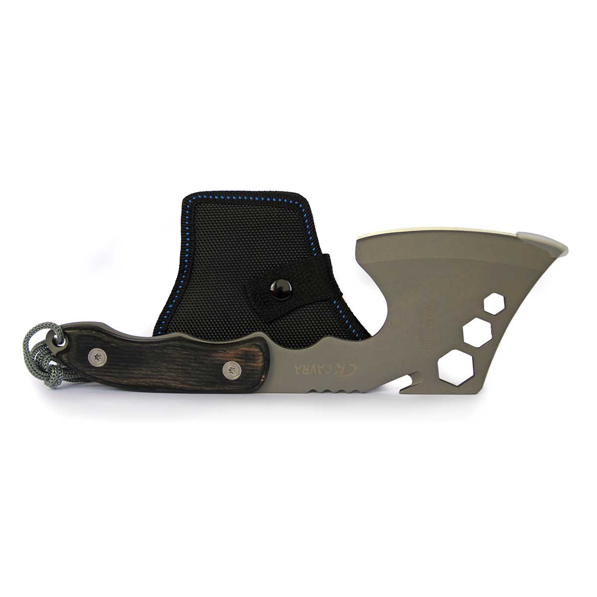 Надёжный топорик выживальщика, толстая высококачественная сталь, чехол для ношения на поясе, рукоять - деревянные накладки, отверстие для темляка