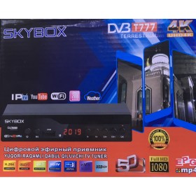 SkyBox T777 - это современный цифровой эфирный Т2 ресивер для приёма телепрограмм и просмотра видео. Подходит для любого телевизора. Тюнер сочетает в себе функции ресивера и медиа проигрывателя, а также подключается к Wi-Fi и позволяет просматривать любое видео с популярного сервиса YouTube.