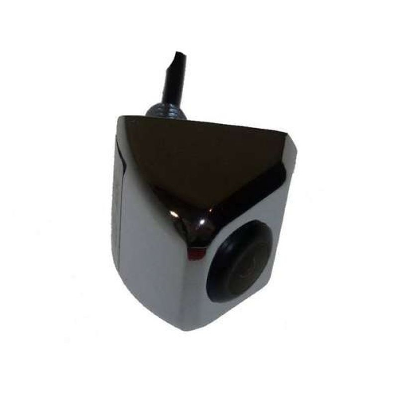 Камера имеет металлический корпус покрытая хромом, так же камера имеет очень малые размеры и простоту установки. К данной камере можно подключить беспроводные модули, так как к другим камерам на штыре как правило нельзя. Камера устанавливается посредством штыре, в результате чего ущерб для машины при установке минимальный, а камеру «плохим людям» не подцепить для ее кражи, так как возникает сложность при ее захвате. Так же сам зрачок выполнен из оптического стекла, а не пластика.. Угол наклона камеры можно регулировать с помощи сгибания кронштейна. Для парковки предусмотрены зеркальные линии и линии для парковки, и широкий угол обзора в 170 градусов по диагонали. Так же в комплекте с камерой идет шнур RCA с проводом возбуждения.