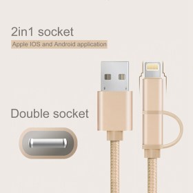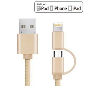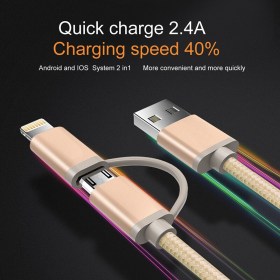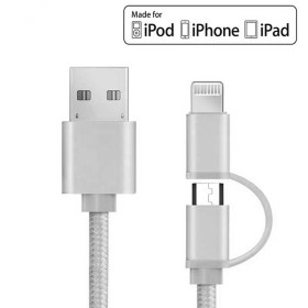 Универсальный кабель 2 в 1 нейлоновый Lightning/ Micro-USB