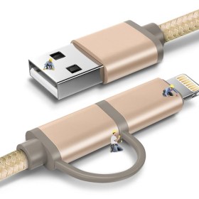Кабель 2 в 1 позволит пользователю подключить к компьютеру или к внешнему аккумулятору смартфоны и планшеты с разъемами micro-USB и Lightning. Обладает высокой прочностью и эластичностью и не боится частого перегибания.
