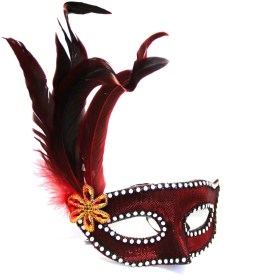 Венецианская маска 4 пера (взрослая) бордо