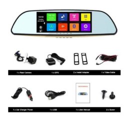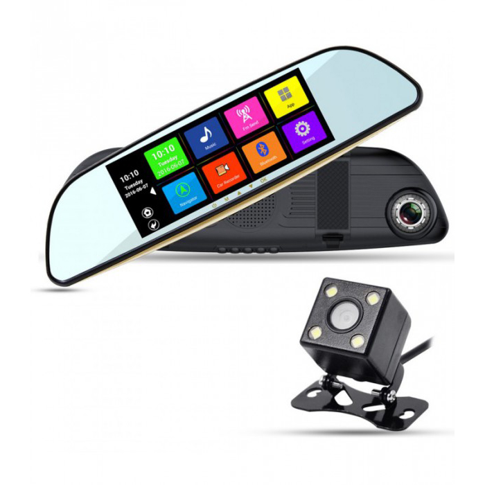 Видеорегистратор-зеркало XPX ZX837 5”/ Удобное сочетание видеорегистраторов (запись переднего вида, запись заднего вида), камера заднего вида работает в режиме парковки, 5 дюймовый монитор расположен посередине зеркала, навигатор с возможностью обновления пробок через WiFi, FM-трансмиттер, просмотр видео с воспроизведением звука через магнитолу, просмотр фото, Android 4.4.2, зеркало со специальным антибликовым покрытием, крепится на штатное зеркало.