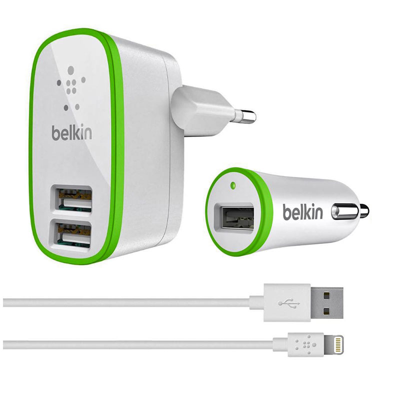 Отличительные особенности Belkin Travel charger 2USB 2.1A + Car charger 1USB 2.1A + Lightning cable White