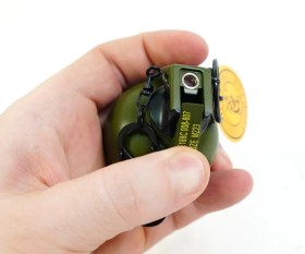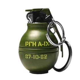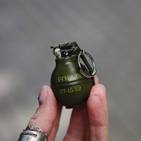 Долговечная многоразовая зажигалка в виде гранаты, выполнена из стали известным производителем.