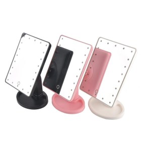 LED Зеркало с подсветкой для макияжа 20 cветодиодов предназначено для женщин, заботящихся о своей внешности, и помогает ухаживать за кожей и наносить макияж. Сенсорная LED подсветка Разработчики предусмотрели удобную и яркую подсветку, что позволяет особенно эффективно пользоваться зеркалом. Вне зависимости от того, какой макияж вы используете, в какое время его накладываете, вы будете выглядеть неотразимо. РЕГУЛИРОВКА НАКЛОНА Угол наклона зеркала легко регулируется на 360 градусов, вы можете выбрать угол, при котором вам особенно удобно будет наносить макияж. Работает от 4х батареек ААА (в комплекте нет батареек) Зеркало работает от батареек вы легко выберете место, в котором вам будет комфортно пользоваться зеркалом. Размер зеркала: высота 27 см. ширина 16.5 см.
