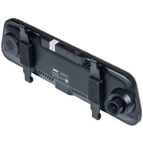 Задняя камера устанавливается отдельно. Она подключается к видеорегистратору в зеркале заднего обзора и показывает всё происходящее сзади автомобиля. Систему можно настроить на автоматическое включение задней камеры при переключении на заднюю скорость. Гибкие настройки видео-регистратора в зеркале заднего обзора дают возможность комбинировать на экране сразу три функции: задний обзор, камеру заднего вида и передний видео-регистратор. Всё снятое видео и аудио хранится на съёмной микро SD-карте до 32 гигабайт.