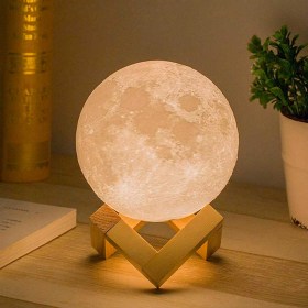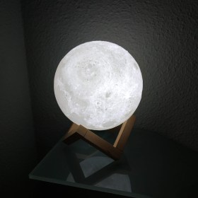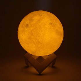 Изделие имеет 2 цвета свечения – теплый желтый и холодный белый. Яркость каждого из режимов можно регулировать на свое усмотрение. Располагается светильник на деревянной подставке. Он имеет лаконичный дизайн и определенно станет украшением любого интерьера!