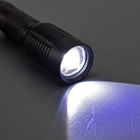 Есть функция ZOOM - возможность фокусировки луча. Светодиод Т6, дальность освещения до 1000 м.