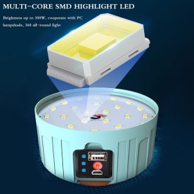 Лампочка и внешняя батарея для походов и резервного (аварийного) освещения USB (5В). Белый холодный свет 5000К. Встроенный аккумулятор 2х18650 1600мАч, дает яркий свет более чем на 10 часов. 3 режима работы.