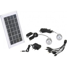Комплект обеспечивает работоспособность разнообразных гаджетов, если Вы находитесь далеко от стационарных источников электроэнергии. Кроме этого он обеспечивает освещение в темное время суток за счет светодиодных лампочек входящих в комплект. Светодиодные лампы также можно использовать для освещения помещения в случае отключения электричества. Мощные светодиоды белого цвета обеспечивают яркость, достаточную для чтения, приготовления пищи или выполнения различного вида работ, отлично подойдет туристам. Использование солнечной панели для подзарядки аккумулятора даст Вам возможность использовать его на протяжении всего похода или путешествия.
