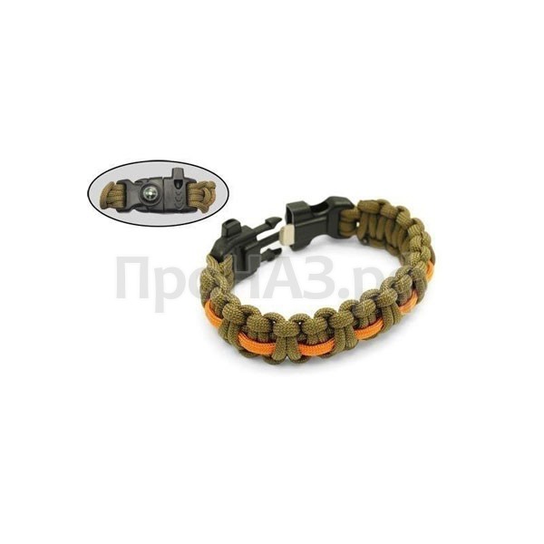 Браслет со свистком, компасом и огнивом Плетение: "Кобра" Замок: фастекс пластик 24 мм Размеры: Длина: 250 мм Ширина: 24 мм Материал: паракорд/пластик