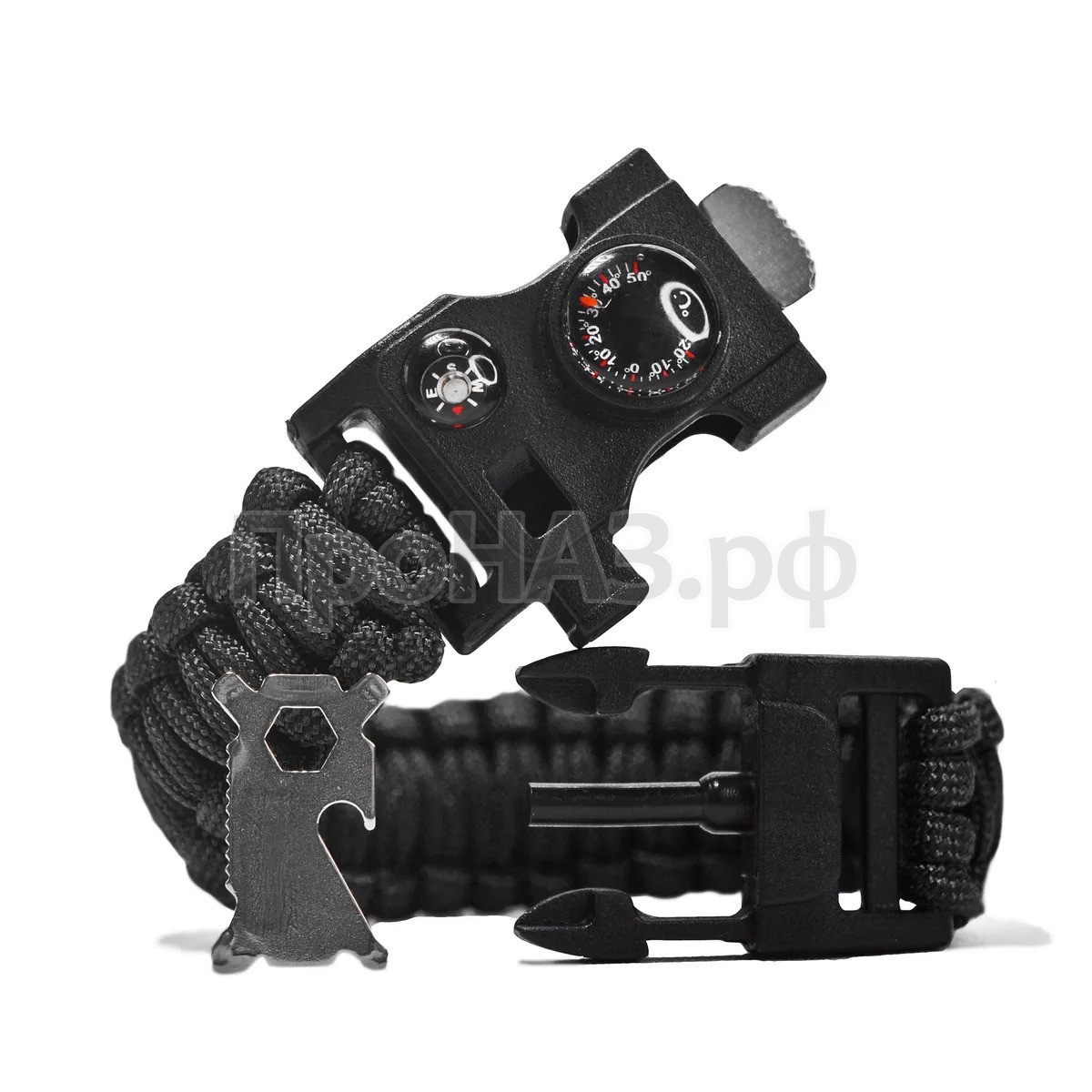 Браслет выживания: М-тул огниво свисток термометр компас (черный)