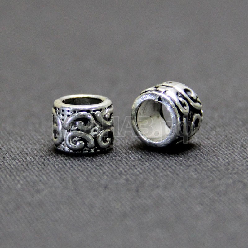 Универсальная (темляк, браслет) Бусина на паракорд. Металлический бочонок с цветочным узором. Диаметр отверстия 4мм. Габариты 8*10мм.