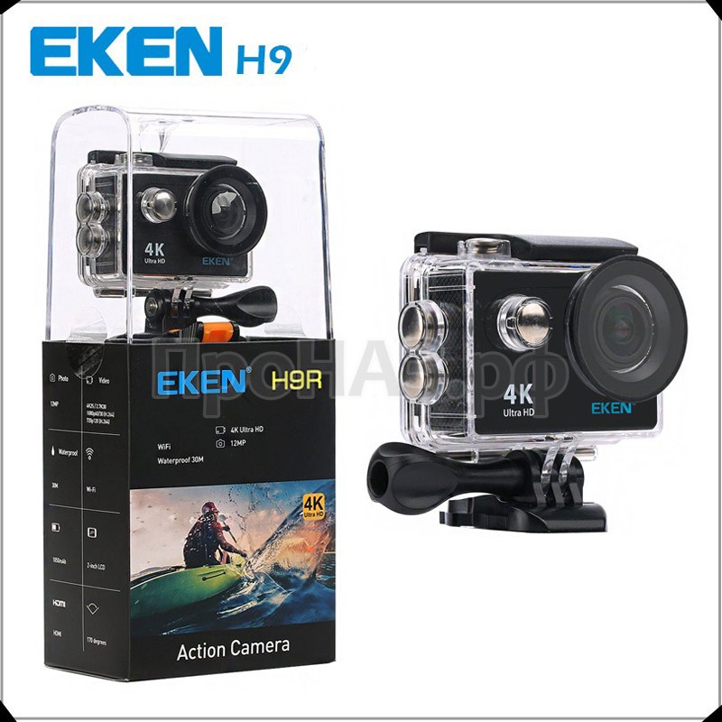Экшен-камера Action camera Eken H9R – это качественная современная экшн-камера, способная обеспечить съемку видео в разрешении 4K(25к/с), 2.7K(30 к/с), 1080p(60 к/с), 1080p(30 к/с), 720p(120 к/с) и сделать качественные фотографии разрешением 12 Мп, позволяя запечатлеть самые яркие моменты Вашей жизни. Вас непременно порадует простота в управлении данным устройством, причем это делать Вы также сможете с помощью своего мобильного телефона, скачав при этом специальную программу. В комплекте с Eken H9R идет большое количество всевозможных креплений и водонепроницаемый кейс, позволяющий снимать под водой на глубине до 30 метров. Емкий аккумулятор на 1050 mAh обеспечит длительное автономное время работы устройства, а специальный режим циклической съемки дает возможность использовать камеру в качестве видеорегистратора.