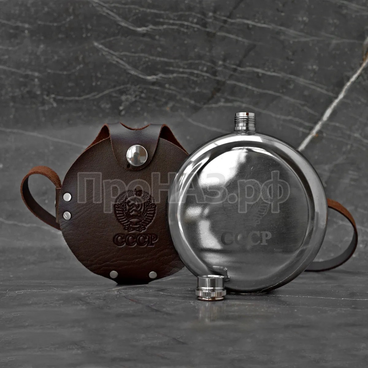 Фляга круглая в кобуре, 8 oz (240 мл) Материал изготовления фляжки – качественная нержавеющая сталь. Она обеспечивает высокую прочность и долговечность изделия, привлекательный внешний вид. Металл никак не взаимодействует с жидкостью, а значит не изменяет вкуса напитка.